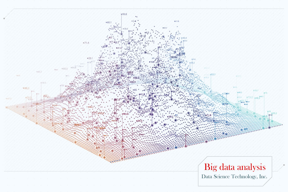 高次元データの解析とモデリングの具現化により機械学習を活用したデータ解析を提供いたします。機械学習はこれまで見逃していた潜在的な事象を読み取りこれからの動向を分析する上での貴重なビジネスリソースの源泉となり得える先進分析手法です。